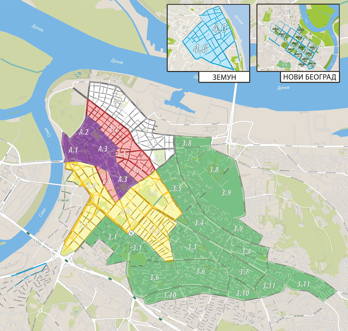 Grad Beograd podeljen je na četiri parking zone u kojima je parkiranje vremenski ograničeno: